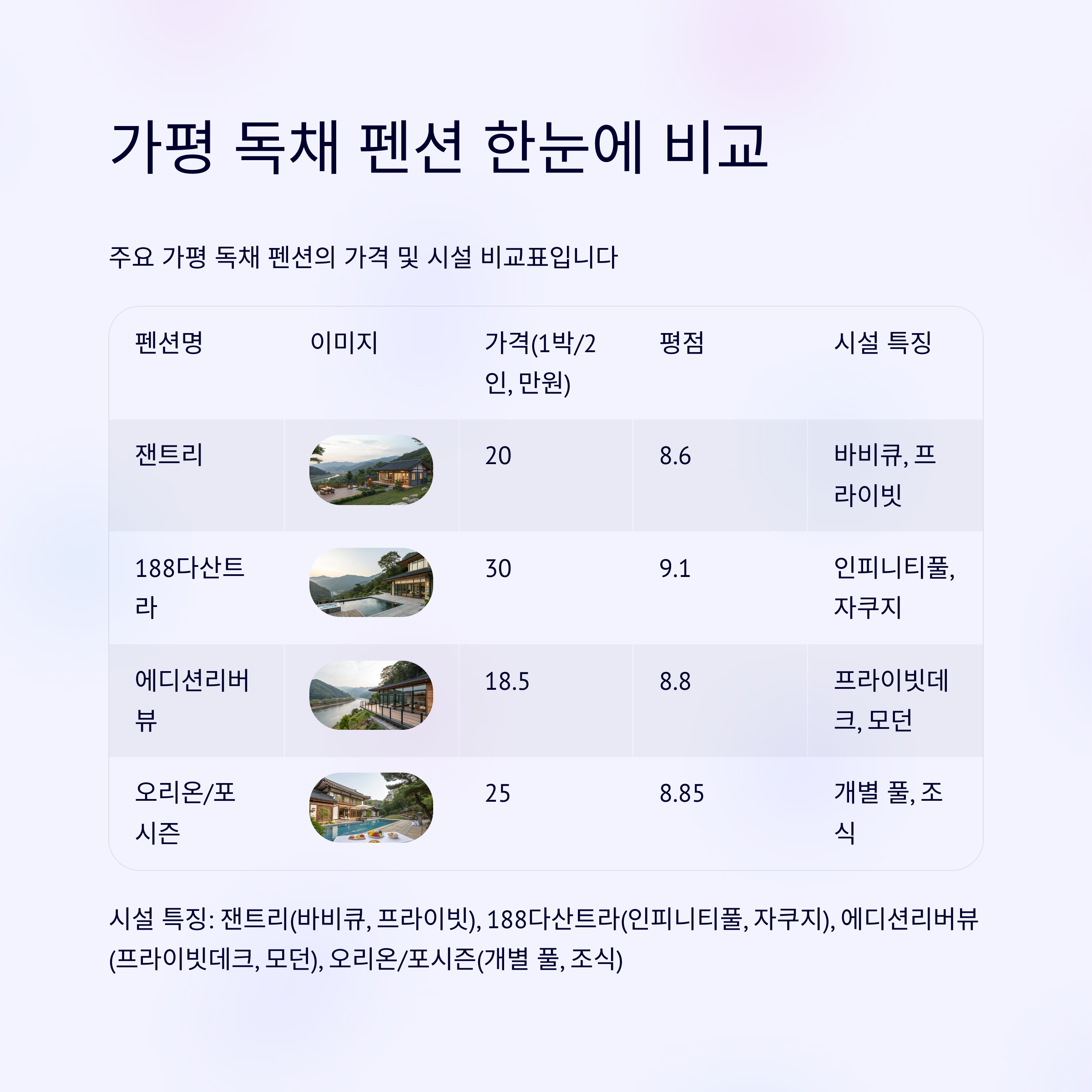 안녕하세요, 여러분! 지난 주말에 가평 여행을 다녀왔는데요, 사실 급하게 떠난 여행이라 숙소 예약부터 걱정이 많았거든요. 그런데 뜻밖에 진짜 괜찮은 독채 펜션을 발견해서 너무 만족스러웠답니다. 그래서 오늘은 그 경험을 바탕으로, 저처럼 가성비와 분위기 모두 잡고 싶은 분들을 위해 가평 독채 펜션을 정리해봤어요. 친구, 연인, 가족 누구와 가든 좋은 시간이 될 수 있는 추천 리스트, 지금부터 소개할게요!