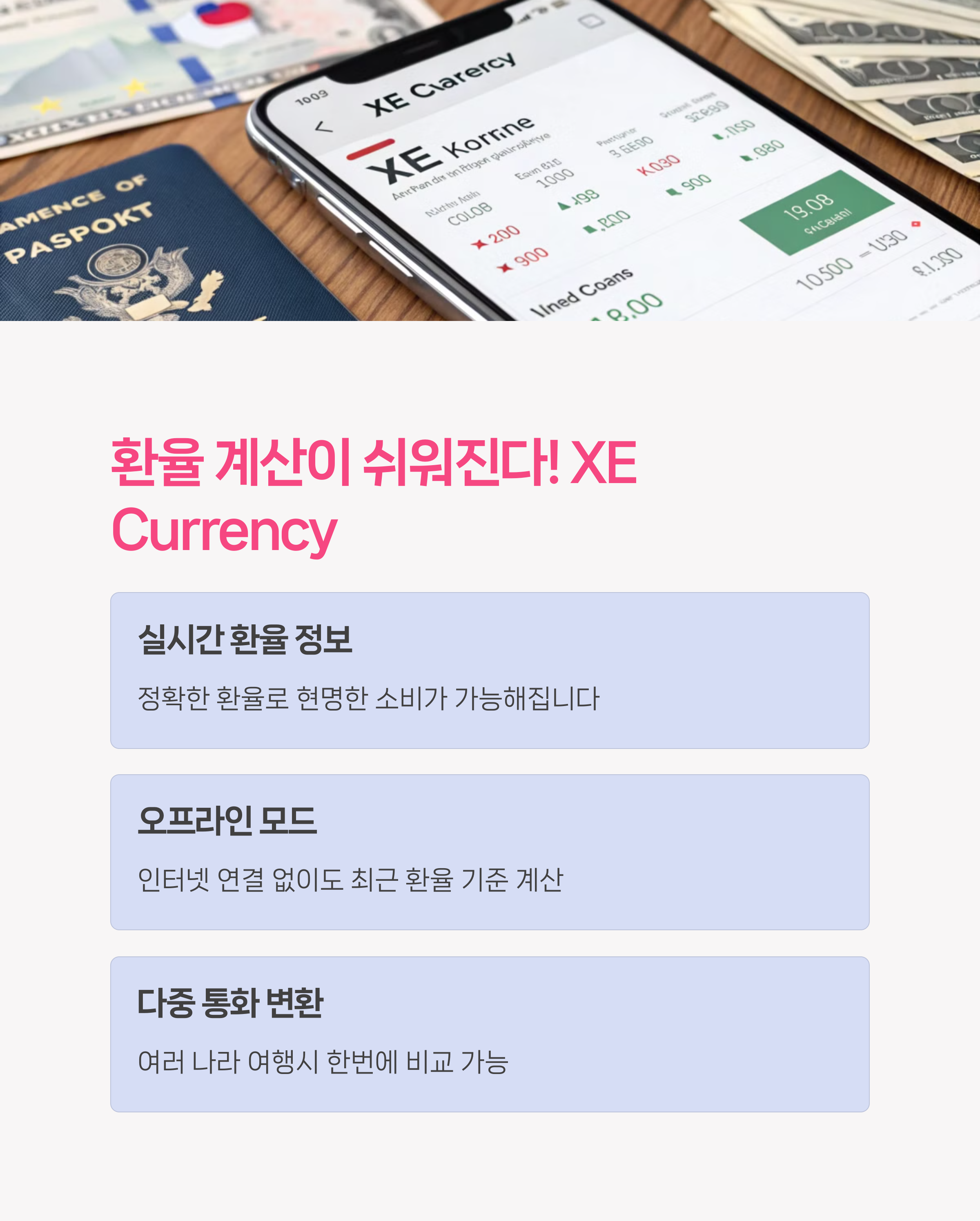 Google Maps, Maps.me 오프라인 지원 가능 | Google Translate, Papago, iTranslate | XE Currency, Currency Converter Plus |